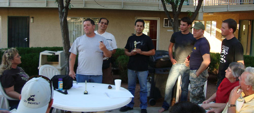 Meteorite enthusiasts meet up after a day in the field looking for pieces of the Holbrook meteorite. Ruben Garcia is holding the trophy. (image: Robert Verish/Meteorite Times Magazine)