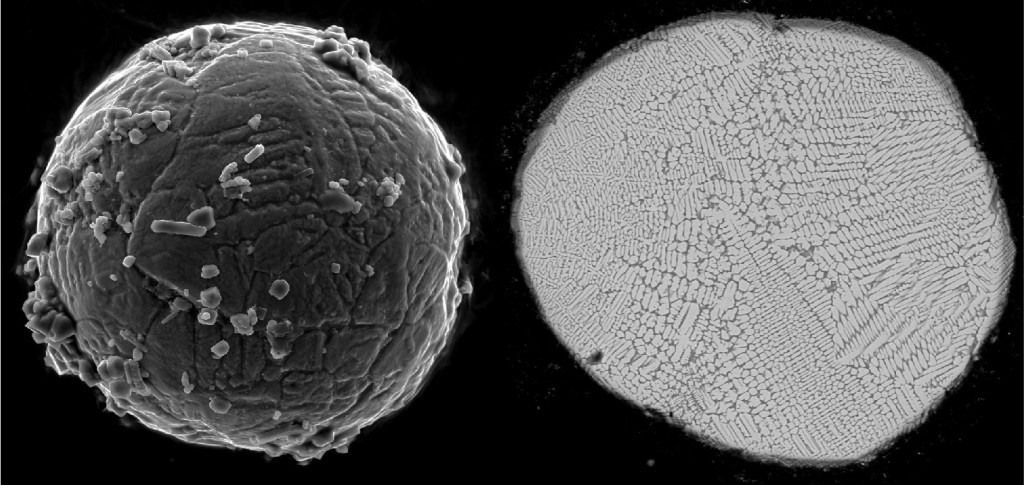 The next day I was excited to see what the bleach had done to those pesky algal filaments. I hurried down to the microscope suite. I had a look at my beaker of cryoconite. But it was gone! Not sort of gone, or a bit gone, but completely and utterly and totally not there anymore. It had apparently just vanished into thin air. I was astonished and a little bit worried. I looked at the contents of the beaker using an optical microscope. There was a little bit of fluid at the bottom and a small amount of sediment. But the algae had vanished. I zoomed in on the sediment and that’s when I got the shock of my life. There, amongst the mineral grains, were these perfectly round particles. They are known as cosmic spherules and form when extraterrestrial dust is heated and melts as it descends at high velocity through the Earth’s atmosphere. Now I could see them clearly and recover them with just a pair of tweezers. Tiny, tiny grains from outer space liberated by something as ordinary and everyday as bleach. It was an experience I have never forgotten.